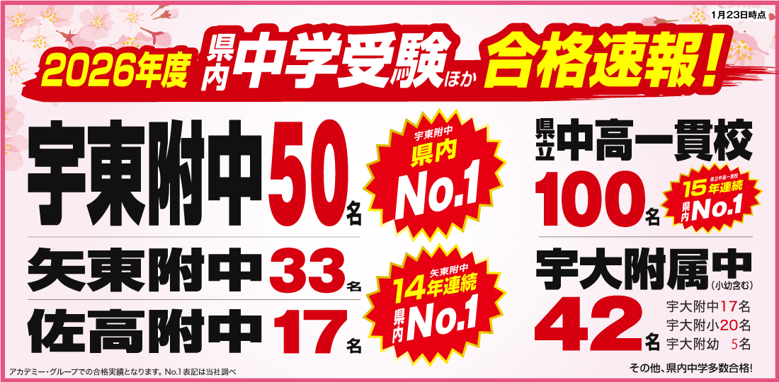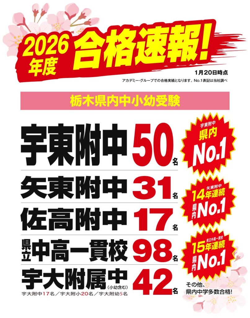 栃木県内最大のネットワークを誇り、50年に亘る地域密着型の進学塾としてお子様の小中高大学受験・進学を強力にサポート