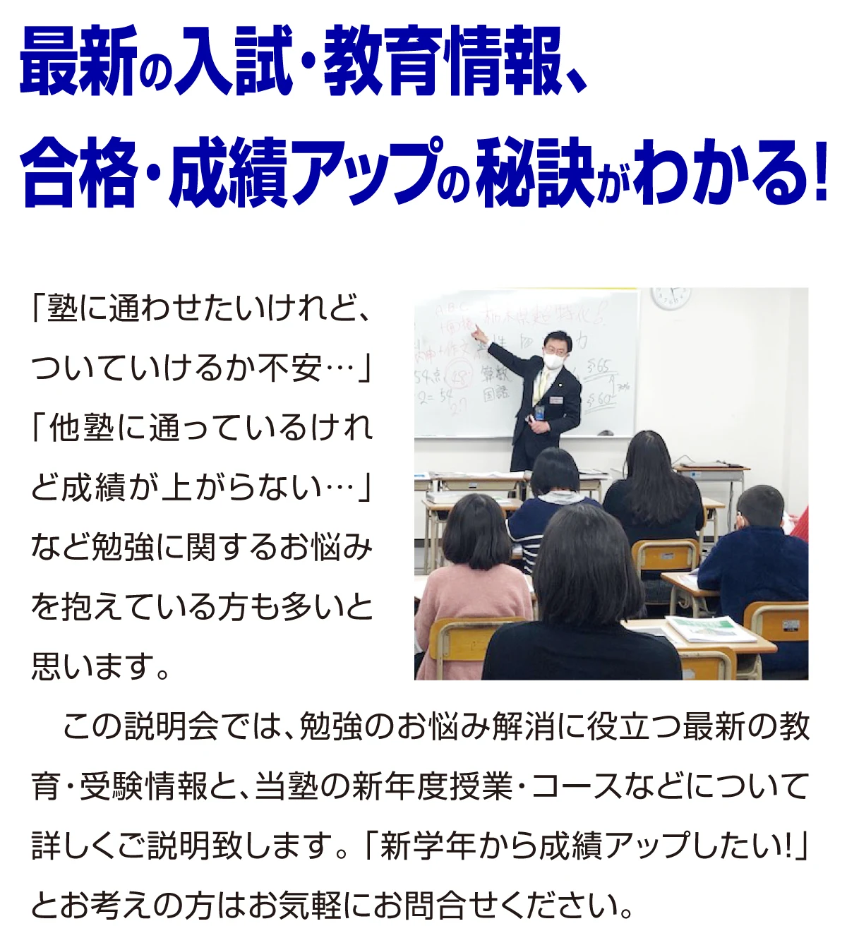 ※校舎により開催日時は異なります。ご希望の校舎までお問合せください。