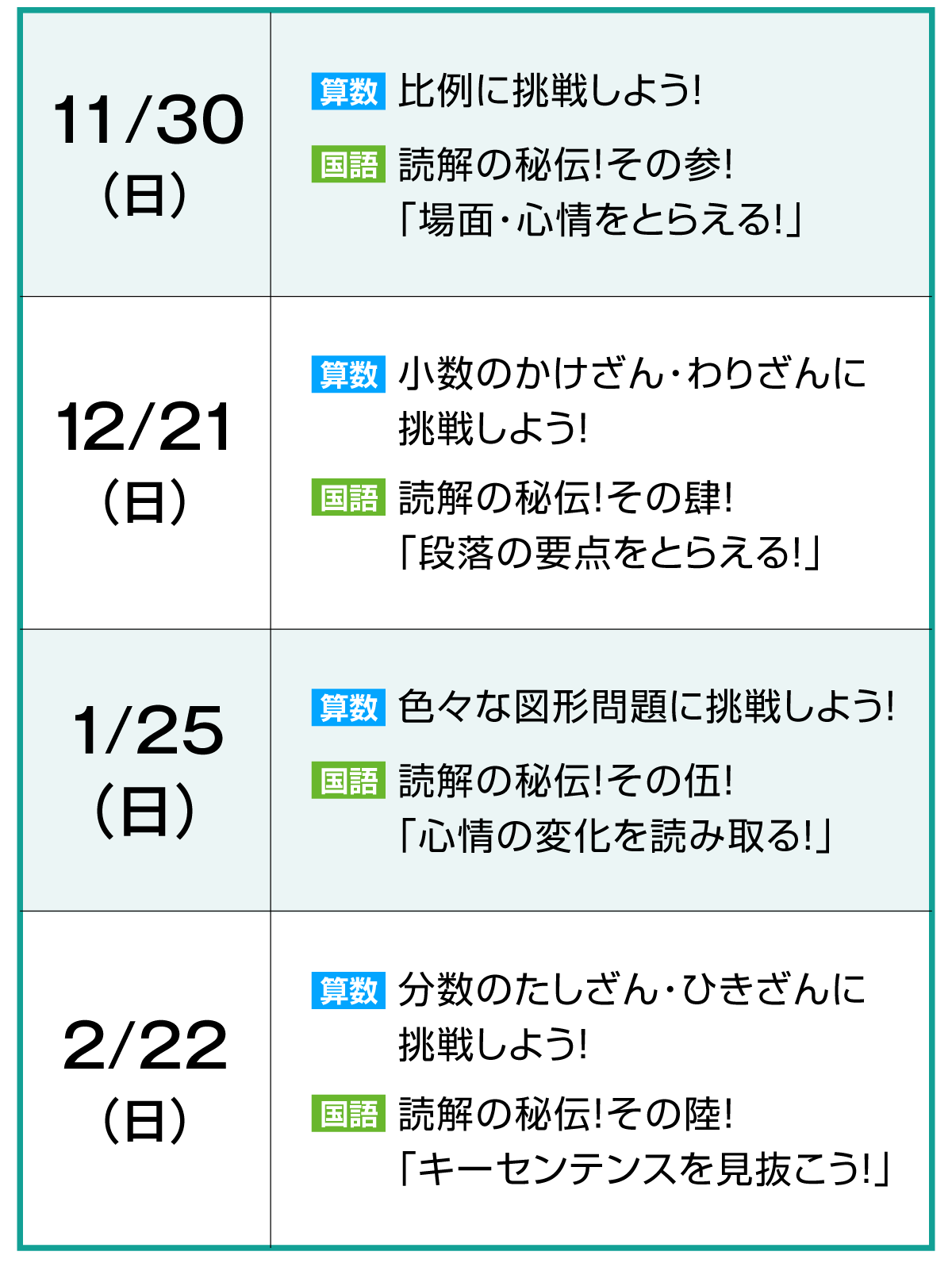 ※校舎により実施日時が異なります。下記よりご確認ください。